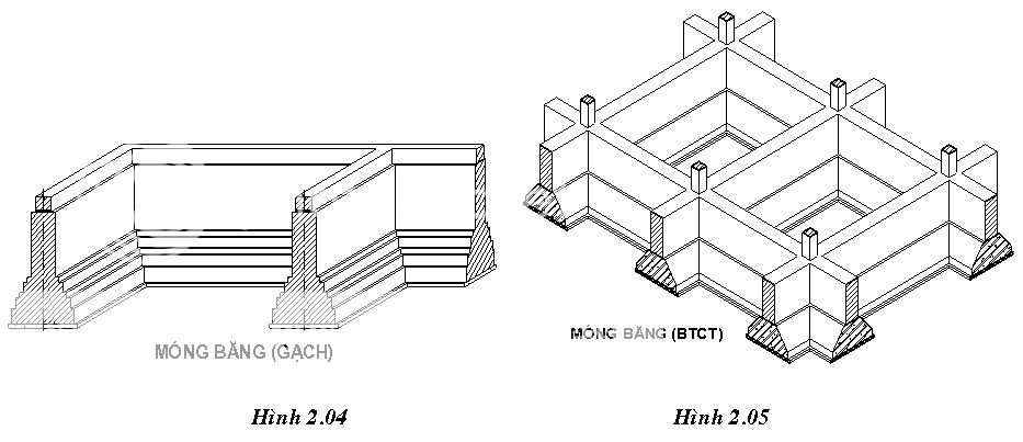 MÓNG - NỀN NHÀ VÀ HÈ RÃNH 2.1. CẤU TẠO MÓNG 2.1.1. Vị trí, tác dụng và đặc điểm Móng là bộ phận dưới cùng của công trình, nằm khuất dưới mặt đất thiết kế. Móng có thể làm bằng nhiều loại vật liệu như gạch, đá, bêtông, bêtông cốt thép. Móng mang toàn bộ tải trọng của công trình truyền đều xuống nền đất. Móng là bộ phận quan trọng, khi thiết kế và thi công cần phải đảm bảo các yêu cầu sau: - Bền vững, ổn định, không trượt, không nứt, lún đều, hình thức phù hợp với từng loại đất. - Vật liệu dùng phù hợp, đảm bảo lâu bền, chống được sự xâm thực của nước trong đất. - Kinh tế, kết cấu hợp lý, thi công đơn giản, giá thành hạ. 2.1.2. Hình dáng móng Móng có tiết diện trên nhỏ, lớn dần về phía dưới để giảm dần ứng suất. Móng thường có ba bộ phận: cổ móng (tường móng), thân móng (tảng móng), đế móng (tảng lót) (hình 2.01). ![]() - Cổ móng: là bộ phận trung gian, nằm sát tường nhà, thường lớn hơn tường nhà, truyền tải trọng từ tường nhà xuống thân móng, ngoài ra còn có tác dụng chống lại lực đạp của đất nền. - Thân móng: là bộ phận chịu lực chính của móng, được cấu tạo theo tiết diện giật cấp, mái vát hay chữ nhật, phần này không được lộ ra ngoài mặt đất thiết kế. - Đế móng: là phần dưới cùng của móng, có tác dụng phân bố đều áp lực xuống đáy móng. Đế móng có thể đổ bêtông gạch vỡ dầy từ 150-300, thường dầy 200, vữa tam hợp mác 50. Đế móng phải nằm sâu dưới mặt đất thiết kế ≥ 500 để chống trượt. Bên dưới móng là lớp lót móng, được làm bằng cát hoặc bêtông gạch vỡ, có tác dụng làm sạch đáy móng và tạo một mặt phẳng đảm bảo cho việc xây móng hay đổ bêtông dễ dàng. Mặt đất thiết kế ở cao độ tiêu chuẩn được quy định theo quy hoạch của khu vực xây dựng, nếu thấp hơn mặt đất tự nhiên phải san đi, nếu cao hơn mặt đất tự nhiên phải lấp vào (hình 2.02). ![]() 2.1.3. Phân loại móng 2.1.3.1. Theo vật liệu Móng cứng: là loại móng được làm bằng các vật liệu chịu lực nén đơn thuần như gạch, đá, bêtông… Móng mềm: là loại móng được làm bằng các vật liệu chịu uốn tốt (kéo và nén) như bêtông cốt thép… 2.1.3.2. Theo hình thức chịu lực Móng chịu tải đúng tâm: là loại móng có hướng truyền lực thẳng đứng từ trên xuống, trùng vào phần trọng tâm của đế móng, đáp ứng được yêu cầu chịu lực tốt nhất cùng với sự phân phối lực đều dưới đáy móng. Móng chịu tải lệch tâm: là loại móng có hướng truyền lực không đi qua trọng tâm của mặt phẳng đáy móng. Loại móng này có kết cấu phức tạp, áp dụng ở những vị trí đặc biệt như khe lún, giữa nhà cũ, nhà mới… 2.1.3.3. Theo hình dáng Móng cột (móng độc lập): là loại móng đứng độc lập, chịu tải trọng tập trung. Được làm bằng các vật liệu như gạch, đá, bêtông hoặc bêtông cốt thép (hình 2.03). Móng cột gạch Móng cột BTCT ![]() Móng băng: là loại móng chạy dài theo tường, truyền tải trọng xuống nền tương đối đều đặn. Móng băng được làm bằng các loại vật liệu như gạch, đá, bêtông, bêtông cốt thép. Tiết diện móng thường có hình chữ nhật, hình thang hoặc giật cấp. áp dụng cho nhà dân dụng ít tầng, có tải trọng không lớn (hình 2.04 - 2.05). ![]() Móng bè (móng toàn diện): là loại móng có diện tích đáy móng bằng diện tích xây dựng. Móng bè là loại móng được làm bằng bêtông cốt thép. Sử dụng nơi đất xấu, công trình có tải trọng lớn như nhà dân dụng nhiều tầng và nhà công nghiệp (hình 2.06). Móng cọc: gồm có cọc và đài cọc. Khi nền đất yếu phải chịu tải trọng lớn của công trình người ta dùng móng cọc. Móng cọc chia ra làm hai loại: móng cọc chống và móng cọc ma sát. Có thể dùng cọc tre, gỗ, bêtông cốt thép. Móng cọc chống được dùng trong trường hợp dưới lớp đất yếu là lớp đất rắn (đá); đầu dưới cọc đóng chặt vào lớp đất rắn và truyền tải trọng vào nó. Nền móng cọc chống không bị lún hoặc lún không đáng kể. Móng cọc ma sát được dùng trong trường hợp lớp đất rắn nằm ở quá sâu. Cọc ma sát truyền tải trọng công trình vào đất qua lực ma sát giữa đất và bề mặt của cọc 2.1.3.4. Theo vị trí - Móng tường giữa: nằm ở vị trí hai bên là nền nhà (hình 2.07). - Móng tường biên: nằm ở vị trí một bên là nền nhà, một bên là hè rãnh (hình 2.08). - Móng khe lún: nằm ở vị trí khe lún của công trình (hình 2.09). - Móng bó hè (bó nền): nằm ở vị trí hành lang, có tác dụng chắn đất đắp của nền nhà. (hình 2.10). - Móng cấu tạo (tường ngăn): nằm ở vị trí dưới tường ngăn có bề dày 105, cao trên 2000 hoặc sát trần (hình 2.11 - 2.12). ![]() ![]() ![]()