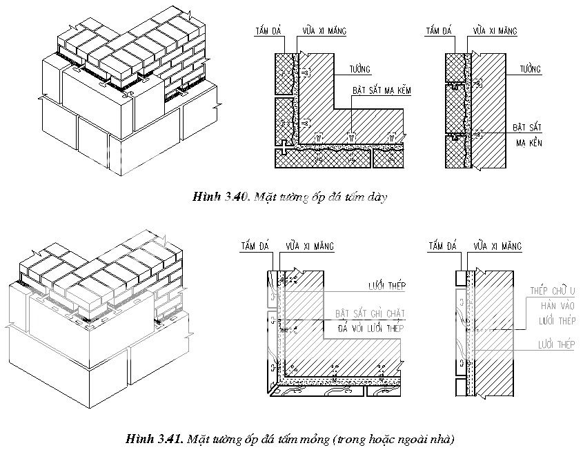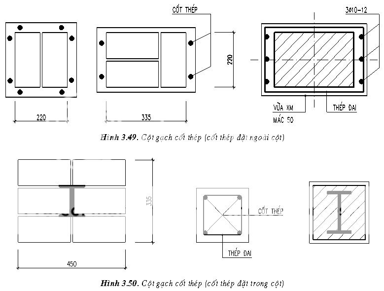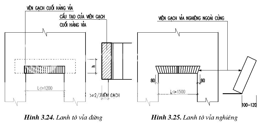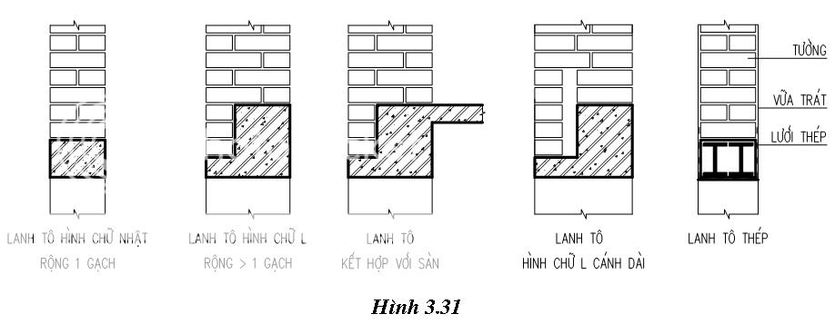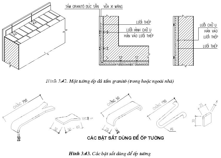 TƯỜNG - CỘT - KHUNG 3.1. CẤU TẠO TƯỜNG 3.1.1. Vị trí, tác dụng và đặc điểm Tường là bộ phận quan trọng trong công trình kiến trúc, nó là bộ phận thẳng đứng nằm từ nền cho đến mái. Có chức năng là kết cấu bao che, ngăn cách giữa các không gian và là kết cấu chịu lực trong những công trình tường chịu lực. Tường chiếm khối lượng vật liệu tương đối lớn. Chủ yếu chịu nén, ngoài ra còn chịu các lực đẩy ngang của gió, bão… Thường được xây bằng gạch, đá hay bêtông cốt thép. Bề dày của tường phụ thuộc vào chiều cao, tải trọng công trình, vật liệu và hình thức kết cấu. 3.1.2. Phân loại 3.1.2.1. Theo vị trí - Tường trong nhà: để ngăn chia không gian trong nhà hoặc để chịu lực. - Tường ngoài nhà: để bao che, ngăn mưa, chắn gió, cách nhiệt, cách âm hoặc để chịu lực. 3.1.2.2. Theo tính chất chịu lực - Tường chịu lực: là tường mang tải trọng của sàn, mái, của người, đồ vật … trong công trình truyền xuống và mang tải trọng của bản thân. - Tường không chịu lực: có tác dụng ngăn chia không gian trong công trình và mang tải trọng của bản thân. 3.1.2.3. Theo vật liệu xây dựng - Tường gạch: dùng gạch đất nung, gạch xỉ, gạch bêtông, gạch silicát … - Tường đá: dùng những phiến đá đã gia công hoặc chưa gia công để xây tường. - Tường bêtông cốt thép: có thể dùng những tấm bêtông cốt thép đúc sẵn hoặc đổ tại chỗ để làm tường. 3.1.2.4. Theo biện pháp thi công - Tường xây: dùng vữa liên kết các viên gạch lại với nhau bằng phương pháp thủ công để thành tường (tường gạch, tường đá). - Tường toàn khối: dùng cốp pha để đổ bêtông tại chỗ. - Tường lắp ghép: chế tạo tại công xưởng hay tại công trường các tấm tường, liên kết giữa các tấm tường có thể là hàn hoặc dùng bulông. 3.1.2.5. Theo tường tính chất đặc biệt - Tường chống phóng xạ. - Tường cách âm, cách nhiệt. - Tường chống thấm. 3.1.3. Cấu tạo một số loại tường 3.1.3.1. Tường gạch * Tường gạch chịu lực (hình 3.01). Là tường mang tải trọng của sàn, mái, của người, đồ vật… trong công trình truyền xuống và mang tải trọng của bản thân. Chiều dày của tường gạch lấy kích thước của viên gạch làm tiêu chuẩn, thông thường chiều dầy tường ≥ 220. ![]() - Nhà một tầng mà bước gian nhỏ có thể xây tường 105, nhưng tại vị trí gác vì kèo và dầm thì phải bổ trụ và với chiều dài tường ≥ 3m thì phải bổ trụ để tăng khả năng chịu lực cho tường. - Nhà từ 1-2 tầng thì có bề dầy tường ≥ 220. - Nhà 3 tầng thì có bề dầy tường bằng 335 cho tầng dưới, tầng trên bằng 220. - Nhà 4-5 tầng thì có bề dầy tường bằng 335 cho tầng 1-2, còn các tầng trên bề dầy tường bằng 220. Nếu tường 220 mà mang tải trọng nặng thì có thể bổ trụ (hình 3.02). ![]() Khi xây tường cần đảm bảo các nguyên tắc: - Bề mặt chịu lực của tường phải thẳng góc với hướng truyền lực. - Vật liệu xây phải ngang bằng, thẳng đứng, mặt phẳng, góc vuông. Mạch vữa đứng hàng trên không trùng với mạch vữa đứng hàng dưới. - Mác vữa phù hợp với yêu cầu của từng loại tường. Khối xây đảm bảo đặc chắc, ổn định. Một số hình thức xây tường: (hình 3.03 - hình 3.11) ![]() ![]() ![]() ![]() ![]() * Tường gạch không chịu lực: Là tường chỉ chịu tải trọng của bản thân và có tác dụng ngăn chia không gian trong công trình. * Tường 60. Thường dùng để phân chia không gian nhỏ như khu vệ sinh, xí, tắm, tiểu... Không nên xây cao quá 1200. Nếu xây dài hơn 2000 phải làm thêm cột gỗ hoặc đổ cột bêtông cốt thép để tăng cường độ bền vững cho tường. Tại vị trí tiếp giáp với cột tăng cường phải bố trí râu thép Æ6 và dùng vữa ximăng để xây. Tường 60 thường được xây bằng vữa mác cao (hình 3.12). ![]() * Tường 105 Thường dùng để ngăn chia không gian các phòng trong công trình, xây tường bao, tường rào. Có thể xây lửng hoặc sát trần. - Nếu xây cao hơn 2000 hoặc sát trần thì tầng một phải xây trên móng cấu tạo, ở các tầng trên phải xây trên dầm (hình 3.13). - Nếu xây lửng, thấp hơn hoặc bằng 2000 thì tầng một xây trực tiếp trên nền, ở các tầng trên xây trực tiếp trên sàn (hình 3.14). ![]() Chú ý không nên xây cao quá 4000. Nếu xây cao từ 2500-3000 thì nên có giằng ngang, nếu xây dài từ 2500 - 3000 thì nên bổ trụ để tăng cường độ bền vững cho tường (hình 3.15). ![]() - Tường lan can: là loại tường xây cao từ 800-1000 để bảo vệ và trang trí. Có thể sáng tạo nhiều mẫu khác nhau. Có thể xây 105 hoặc 60, phía trên phải đổ giằng bêtông cốt thép. - Tường hoa trang trí: là loại tường dùng để trang trí các vị trí thích hợp trong công trình, ngoài ra còn dùng để thông thoáng. - Tường gạch rỗng: là loại tường dùng gạch 2, 3, 4… lỗ để xây vách ngăn giữa các bước gian. Có tác dụng cách nhiệt, cách âm tốt, tải trọng nhẹ. - Tường bêtông cốt thép đúc sẵn: có bề dày mỏng, tiết 