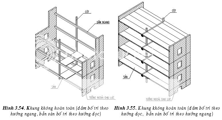 3.2.1. Vị trí, tác dụng và đặc điểm Là bộ phận đứng độc lập chịu lực nén đúng tâm hoặc lệch tâm. Tiết diện có thể là hình tròn, hình vuông, hình chữ nhật hoặc đa giác. Vật liệu làm cột có thể là gạch, đá, gỗ, thép, bêtông cốt thép. 3.2.2. Cấu tạo một số loại cột 3.2.2.1. Cột gỗ Dùng trong công trình tạm thời hoặc công trình cần trang trí. Tiết diện có thể tròn (Æ100-200) hoặc vuông (100´100, 200´200). Liên kết chân cột bằng bật thép, chôn sẵn trong bêtông làm móng. Khi chôn cột cần chống ẩm cho chân cột bằng cách quét hắc ín (nhựa đường) hoặc kê chân cột bằng đá. Nếu phải nối cột thì mặt nối phải vuông góc với trục của cột hoặc nối theo kiểu chữ Z. 3.2.2.2. Cột gạch Là loại cột thông dụng. Dùng gạch mác 75, xây bằng vữa tam hợp mác 50 hoặc vữa ximăng. Tiết diện cột phù hợp với kích thước của gạch như 220´220; 220´335; 335´335; 335´450… (hình 3.48). ![]() 3.2.2.3. Cột gạch cốt thép Để tăng cường khả năng chống uốn và chống rung động cho cột gạch người ta phối hợp thêm cốt thép. Dùng thép tròn hoặc thép hình. Nếu dùng thép tròn, cốt thép có thể bao ngoài cột. Nếu dùng thép hình I, L, U có thể đặt trong cột. Cột gạch cốt thép thường xây bằng vữa ximăng mác 50-75 (hình 3.49 - 3.50). ![]() 3.2.2.4. Cột thép (hình 3.51) Có khả năng chịu lực cao. Đáp ứng được các yêu cầu về chiều cao của nhà. Thường dùng trong nhà công nghiệp. Tiết diên có thể chữ I, L, U đơn hoặc ghép với nhau tuỳ theo yêu cầu chịu lực. Cột thép phải thường xuyên chống gỉ. ![]() 3.2.2.5. Cột bêtông cốt thép Cột bêtông cốt thép chịu lực uốn tốt (kéo và nén). áp dụng cho nhà chịu tải trọng lớn và chống rung động cao. Cột bêtông cốt thép thường liên kết với dầm tạo thành hệ thống khung cột. Cột bêtông cốt thép có thể đổ tại chỗ hoặc lắp ghép, bêtông có mác lớn hơn mác 150. 3.2.3. Cấu tạo mặt cột Giống như cấu tạo mặt tường. 3.3. CẤU TẠO KHUNG 3.3.1. Đặc điểm và phân loại Nhà nhiều tầng và cao tầng thường dùng kết cấu khung. Theo hình thức kết cấu chịu lực có thể chia khung làm hai loại: khung hoàn toàn (khung trọn) và khung không hoàn toàn (khung khuyết). - Khung hoàn toàn: các bộ phận chịu lực chủ yếu là cột, dầm, tường ngoài có thể tự mang hoặc tường treo. áp dụng cho nhà nhiều tầng hoặc cao tầng (hình 3.52 - 3.53). ![]() - Khung không hoàn toàn: có bộ phận chịu lực gồm các tường, dầm cột, trong đó tường trong chịu lực, tường ngoài dùng cột chịu lực hoặc tường ngoài chịu lực bên trong dùng cột chịu lực. áp dụng cho nhà không cao lắm (hình 3.54 - 3.55). Theo vật liệu có thể chia khung thành các loại sau: - Khung có cột bằng gạch, các dầm dọc, dầm ngang bằng bêtông cốt thép, bằng gỗ hoặc bằng thép. - Khung bêtông cốt thép. - Khung thép. Theo kinh nghiệm nhà cao từ 30 tầng trở xuống nên làm bằng khung bêtông cốt thép, nhà cao trên 30 tầng nên làm bằng khung thép. ![]() 3.3.2. Cấu tạo khung gạch (nhà có cột bằng gạch). Nhà dân dụng ít tầng có thể dùng khung bên trong nhà với các cột xây bằng gạch (khung khuyết). Gạch xây cột dùng loại tốt, không nứt nẻ. Vữa ximăng cát hoặc vữa tam hợp mác cao. Kích thước tiết diện cột do tính toán, nhưng không nên nhỏ hơn 335´450. Cột có kích thước tiết diện 335´335 chỉ gặp ở các tầng trên cùng của nhà hoặc nhà một tầng. Cột gạch có tiết diện lớn mà khả năng chịu lực kém, nên dùng cốt thép hoặc đai thép để tăng cường độ chịu lực cho cột. Khi gác dầm gỗ lên cột gạch, không đặt trực tiếp dầm lên cột gạch mà phải gác lên một tấm đệm bằng bêtông cốt thép tạo sẵn. Những chỗ cắt nhau giữa dầm bêtông cốt thép, dầm thép và cột, phần cột gạch được thay bằng bêtông chèn theo suốt chiều cao của dầm. Trong nhà dân dụng dầm thép chỉ dùng trong những trường hợp cần thiết, còn dầm gỗ chỉ nên dùng trong những nhà ít tầng. Đối với nhà nhiều tầng cột gạch dễ bị ảnh hưởng của uốn dọc. Vì thế cần phải ghim chặt các đầu cột ở mức sàn. Khi dùng dầm bêtông cốt thép và sàn bêtông cốt thép có thể đạt tới độ cứng cần thiết. Khi dùng dầm gỗ, để đảm bảo độ cứng cho khung nhà cần có các hệ thống dầm ngang và dọc nhà, các dầm này cần phải được ghìm chặt vào tường, chỗ nối với cột phải dùng bulông hoặc các thanh thép dẹt ốp vào rồi hàn lại. 3.3.3. Cấu tạo khung bêtông cốt thép Theo phương pháp thi công khung bêtông cốt thép có thể phân thành: - Khung bêtông cốt thép toàn khối: các bộ phận dầm cột đều đổ tại chỗ. - Khung bêtông cốt thép lắp ghép: các cấu kiện chế tạo trong xưởng, hoặc sân lộ thiên sau đó lắp ghép ở hiện trường. - Khung “lắp ghép - toàn khối” (bán lắp ghép) với một bộ phận chế tạo trong xưởng, một bộ đổ tại chỗ hoặc các cấu kiện được chế tạo đúc sẵn không hoàn toàn, khi lắp chúng sẽ đỗ tại chỗ thêm để “toàn khối ho