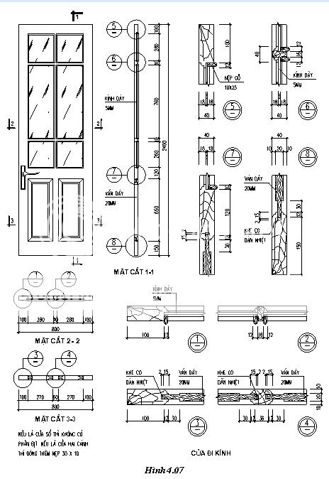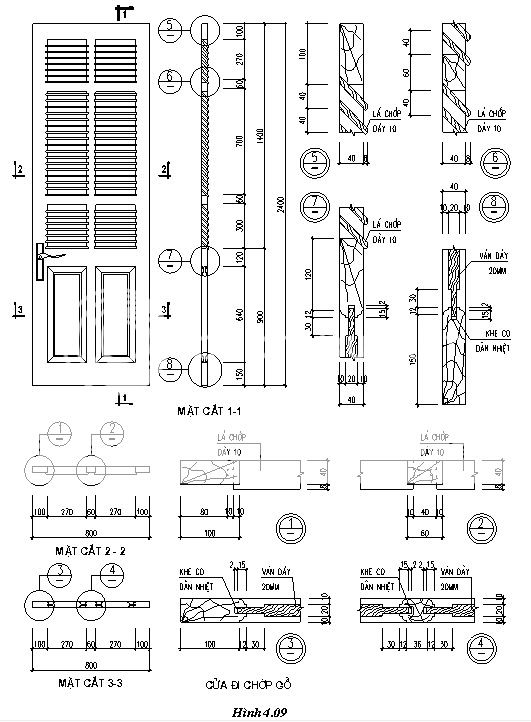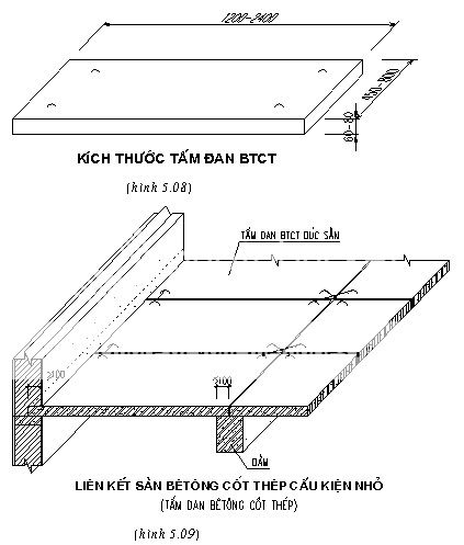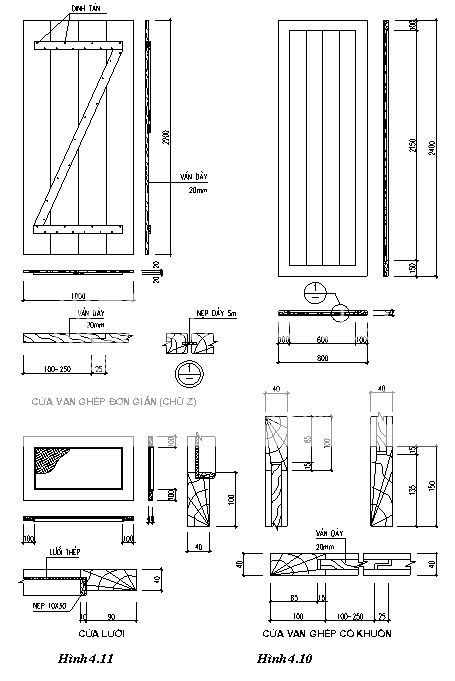 Cánh cửa gồm hai bộ phận: khung cánh và phần che bịt. Khung cánh cửa: thường làm bằng gỗ, thép, nhôm hoặc chất dẻo. Chiều dày các thanh gỗ làm khung cửa thường dầy 40. Bản rộng của khung cửa sẽ căn cứ vào hình thức của cánh cửa mà quyết định. Với cửa sổ, bản rộng hai thanh ngang phía trên và hai thanh đứng 60-80, đố ngang 35-40. Với cửa đi, bản rộng thanh ngang phía trên và hai thanh đứng 80-100, thanh giữa ngang tầm tay và thanh ngang dưới cùng ở vị trí thường bị va đập nên làm cần rộng hơn, khoảng 120-200. Phần che bịt: tuỳ theo loại cửa mà có thể làm bằng kính, panô bằng ván gỗ ghép, gỗ dán, lưới thép mắt cáo, lưới ngăn ruồi muỗi. Phần che bịt thường được ***g vào khung cửa một khoảng 15 và để một khe từ 2-3mm đề phòng gỗ dãn nở do nhiệt độ thay đổi. Khe tiếp giáp giữa hai cánh cửa: các thanh đứng của khung cửa, dọc theo khe được cấu tạo theo hình lồi lõm, chữ Z hoặc đóng nẹp để ngăn chặn không cho gió, mưa lọt vào nhà ![]() 4.5. CẤU TẠO MỘT SỐ LOẠI CỬA THÔNG DỤNG 4.5.1. Cửa kính (hình 4.07) Tác dụng để lấy ánh sáng, che mưa, chắn gió và chắn bụi và ngăn cách các phòng. Dùng nơi yêu cầu chống nóng không cao, như khu vệ sinh, cầu thang, cửa kính bên trong. Kính thường dày 3-5mm và được ghép vào khung cánh cửa. Nếu là cửa đi thì phần dưới thường bịt panô gỗ hoặc nan chớp. ![]() 4.5.2. Cửa panô (hình 4.08) Tác dụng che mưa, che nắng, chắn gió và ngăn cách các phòng. Dùng ván dày 18 đã bào, ***g vào khung cánh cửa, có khe co dãn từ 2-3mm đề phòng gỗ dãn nở do nhiệt độ thay đổi. Ván lùa (panô) có thể để nguyên tấm hoặc ghép lại với nhau. ![]() 4.5.3. Cửa chớp (hình 4.09) Tác dụng che mưa, che nắng, thông hơi, ngăn cách các phòng và che được ánh sáng trực tiếp. Các nan chớp là những lá chắn bằng gỗ dày 10, đặt nghiêng 450 ra ngoài, nan chớp thường dài 250-300. Không làm dài quá vì dễ bị cong vênh. ![]() 4.5.4. Cửa ván ghép (hình 4.10) Dùng cho công trình cấp 4 hoặc nhà tạm. Gia công đơn giản, giá thành hạ. Giữa ván và khung cánh cửa có khe hở bằng 2-3mm để tránh nhiệt độ thay đổi và chống sứt mẻ khi lắp ráp. Ván được ghép khớp vào nhau rồi đưa vào khung cánh cửa hoặc liên kết bằng nẹp chữ Z. 4.5.5. Cửa lưới (hình 4.11) Cửa lưới thép, lưới mắt cáo, lưới nilông... dùng chống ruồi muỗi, chuột và thông thoáng. ![]() 4.5.6. Cửa lật (cửa quay) (hình 4.12) Cửa lật thường quay theo trục ngang dùng trong nhà vệ sinh, phòng thí nghiệm hoặc làm cửa thông gió phía trên cửa đi. ![]() 4.6. CÁC PHỤ KIỆN CỦA CỬA 4.6.1. Bộ phận đóng mở cửa 4.6.1.1. Bản lề Phụ kiện liên kết giữa cánh cửa và khuôn cửa giúp vận hành đóng mở cánh cửa được dễ dàng. Có 3 loại bản lề thường dùng: - Bản lề cối dùng cho cửa có khuôn. - Bản lề gông dùng cho cửa không khuôn. - Bản lề bật dùng cho cửa mở hai chiều. 4.6.1.2. Các bộ phận khác giúp đóng mở cửa - Tay chống hoặc kéo dùng cho cửa sổ mở có trục quay ngang, đặt ở thang ngang trên hoặc thanh ngang dưới của khung cánh cửa. - Chốt quay dùng cho cửa sổ lật có trục quay ngang, đặt ở giữa cánh, trên hai thanh đứng bên của khung cánh cửa. Hoặc cho cửa mở có trục quay đứng, đặt ở giữa cánh, trên thanh ngang trên và dưới của khung cánh cửa. - Bánh xe lăn trên rãnh hoặc thép hướng dẫn dùng cho cửa đẩy trượt, đẩy xếp. 4.6.2. Bộ phận liên kết 4.6.2.1. Êke và T Bộ phận dùng để củng cố cánh cửa, giữ cho khung cánh cửa luôn vuông góc, không biến hình. 4.6.2.2. Bật sắt Bộ phận dùng để liên kết và ổn định khuôn cửa vào tường. Tối thiểu có ba bật sắt cho một thanh đứng của khuôn cửa. 4.6.2.3. Đinh vít Để liên kết các loại phụ kiện vào khuôn và khung cánh cửa. 4.6.3. Bộ phận then khóa 4.6.3.1. Crêmôn Bộ phận có tác dụng cố định cánh cửa vào khuôn. Có tay vặn đặt cao so với nền 1500 cho cửa sổ, 800-1000 cho cửa đi. 4.6.3.2. Then cài Bộ phận dùng thay cho Crêmôn. Then cài ngang dùng cho cửa một cánh, then cài dọc lắp ở trên và dưới dùng cho cửa hai cánh. 4.6.3.3. Khoá Tuỳ từng loại khoá mà bắt bắt âm vào trong thanh đứng của khung cánh cửa hay bắt lộ bên ngoài. Thông thường ổ khoá được bắt phía bên phải cửa so với hướng đi vào nhà. 4.6.4. Bộ phận bảo vệ 4.6.4.1.Tay nắm Bộ phận có tác dụng giúp đóng mở cửa dễ dàng. 4.6.4.2. Móc gió và chặn cánh Bộ phận có tác dụng cố định cánh cửa ở vị trí mở cửa. Đối với cửa sổ thì khuy thép được bắt vào cánh cửa, móc thép được bắt vào khuôn. Đối với cửa đi móc thép được bắt vào gỗ chôn sẵn ở tường. hương 5 SÀN BÊTÔNG CỐT THÉP 5.1. VỊ TRÍ, TÁC DỤNG VÀ ĐẶC ĐIỂM Sàn là bộ phận kết cấu đồng thời làm hai nhiệm vụ chịu lực và bao che cho công trình. Sàn chịu tất cả các loại tải trọng thường xuyên và tạm thời tác động lên, như tải trọng bản thân của tường vách, thiết bị, đồ đạc và của con người bên trên truyền xuống qua các kết cấu
